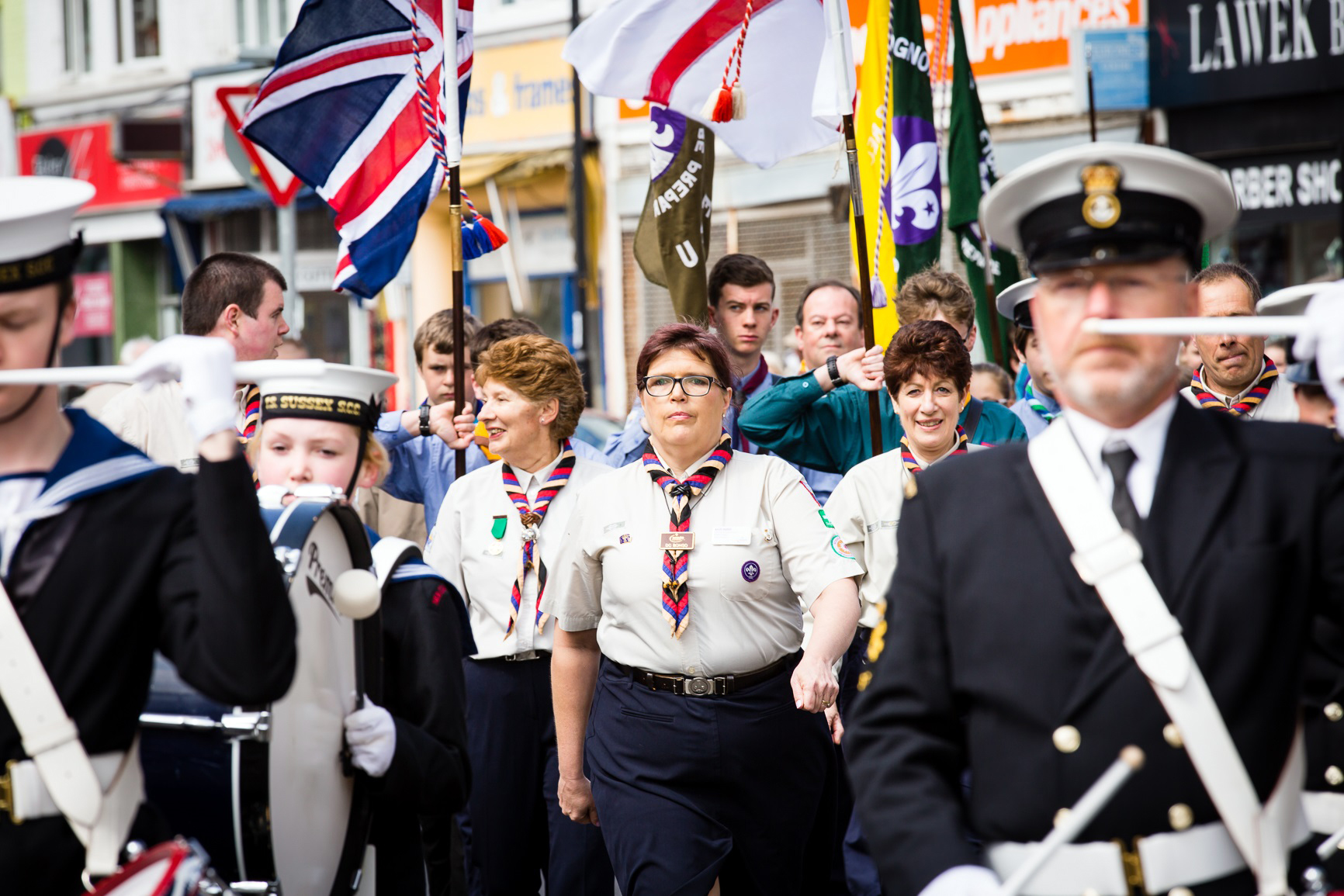 The parade began in the London Road car park and marched to the precinct and along the High Street and followed the reverse route to end in the London Road car park.